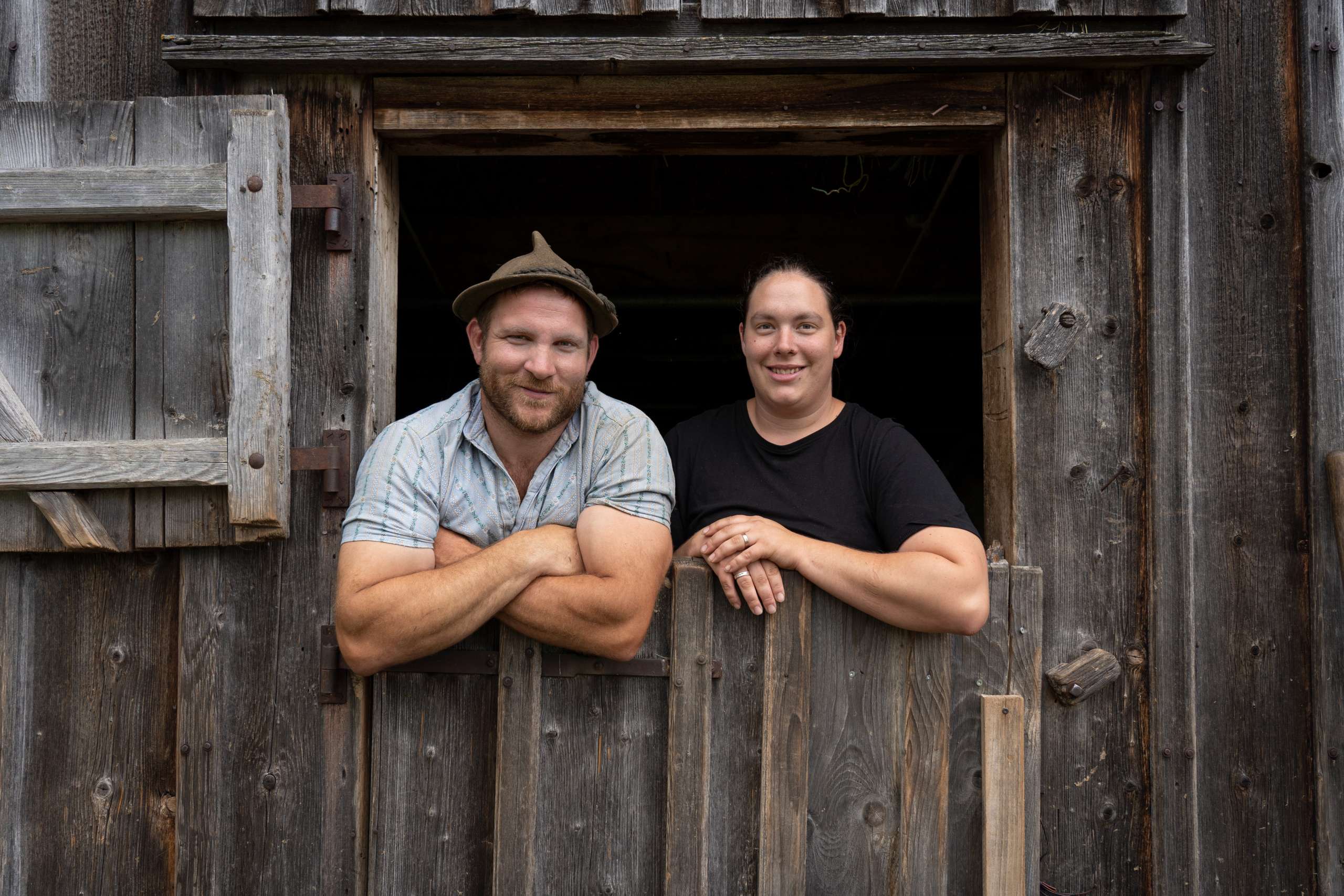 Anna und Ueli sind beide ausgebildete Landwirte. Puur, wie wir hier sagen. Gemeinsam führen sie einen Bauernhof mit Schwerpunkt Milchwirtschaft nahe des Dorfes Ennetbühl. Der Toggenburger und die Berner Oberländerin teilen ausserdem die Leidenschaft des Jodelns. Ueli singt beim Jodlerklub Bergfründ, Anna beim Jodelchörli Alpenrösli. Jeden Frühling freuen sich die jungen Eltern eines Buben auf den Sommer auf der Alp - wohin sie übrigens traditionell sennisch öberefahre und auch Anna in die Toggenburger Tracht schlüpft. Etwas Besonderes hat sie dann doch ins Toggenburg mitgenommen: nämlich ihre liebste Kuh, die sie liebevoll "Grosi" nennt und die als Fleckvieh unter dem Braunvieh gleich auffällt.